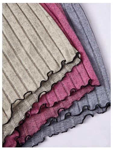 Women's 3 Pack Ribbed Pajamas Set Lettuce Trim Sleeveless Cami Crop Top and Shorts Lounge Set Sleepwear Loungewear 5
