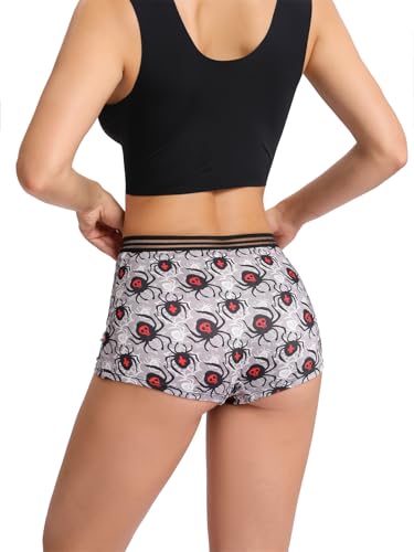 Morvia 10 Pack Variety of Gothic Print Boyshorts Underwear, High Waist Elastic Band, Assorted Halloween Skull Spooky Patterns 6