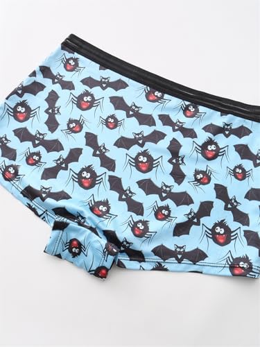 • PACK CONTENTS: Set of 10 randomly assorted gothic-style boyshort underwear featuring various Halloween-themed prints including skulls, bats, spiders, and celestial patterns