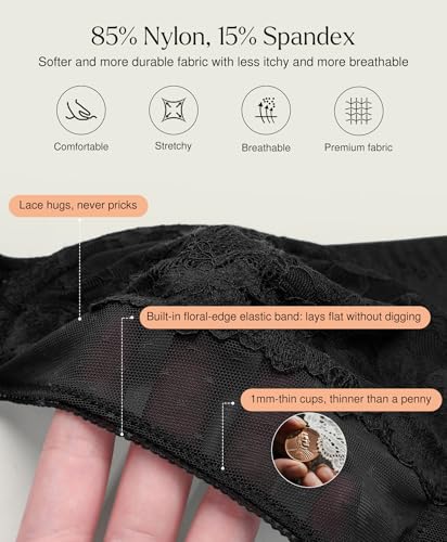 • Enclosed lace construction : Floral lace bras, 85% nylon, 15% spandex, fully bound so no raw edges touch the skin, inner mesh layer enhances breathability