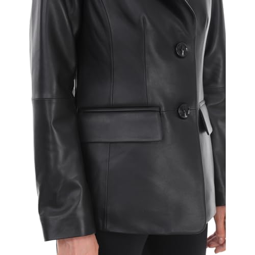 More information about Lambskin Leather Jacket Women,Long Sleeve Button Front Leather Blazer,Notched Lapel Casual Style,Vent Detail