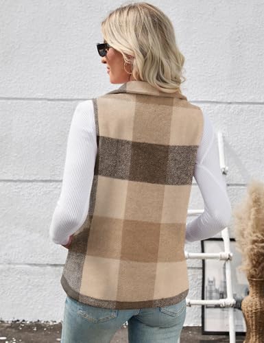 Rapbin Women's Plaid Outerwear Vests Tops Zip Up Collared Sleeveless Jacket with Pockects 4