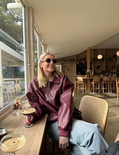• Style&Match: Oversized silhouette black/green/red/winered/mahogany leather jacket is an unparalleled statement piece for your 2024 spring/fall/autumn/winter wardrobe. Layer our motorcycle coat over any crop top, pair it with leggings, jeans and boots, and you'll effortlessly rock a luxurious and vintage look
