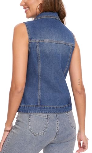 MISS MOLY Women's Denim Vest Cropped Classic Sleeveless Jean Vest Jackets With Flap Pockets 4