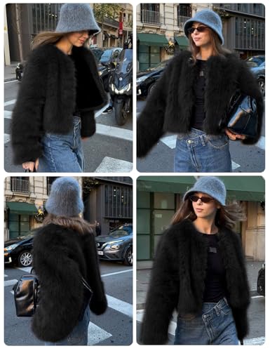 Shiyifa Women's Faux Fur Coat Long Sleeve Fleece Cropped Jacket Open Front Shaggy Warm Short Fall Winter Outerwear 4