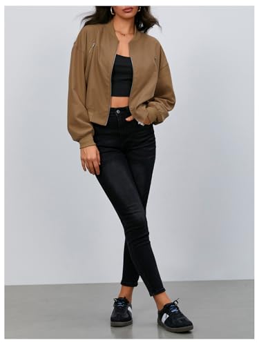 Verdusa Women's Cropped Bomber Jackets Casual Lightweight Jacket Zip Up Long Sleeve Coat Fall Jacket 2025 5
