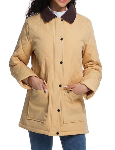 HOT ! Quilted Barn Jacket for Women Corduroy Collar Lightweight Puffer Jackets Casual Winter Coat with Pockets