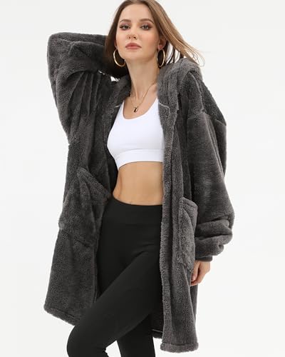 Argstar Hooded Cardigan for Women and Men, Oversized Sweatshirt Fuzzy Fleece Blanket Hoodie Jacket - One Size Fits All 4