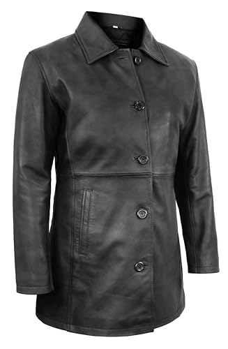 Casual Real Leather Car Coat - 3/4 Length Womens Leather Jacket Winter Fashion Long Leather Jacket 4