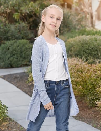 More information about Amarmia Girl's Open Front Cardigan Long Sleeve Knit Sweaters Lightweight Summer Solid Loose Outerwear Coats with Pockets