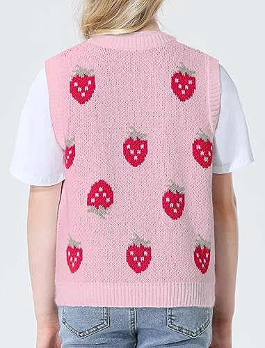 Mebius Girl's Cute Preppy Sweater Vest Sleeveless V Neck Knit Casual School Plaid Checkered Strawberry Cropped Top 5