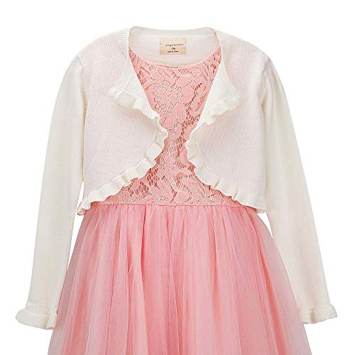 Girls Long Sleeve Bolero Cardigan Shrug Beaded Lace Cotton Flower Jacket Shrug Short Cardigan Dress Cover Up 4