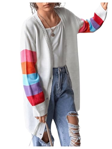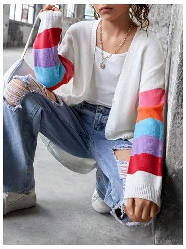 • Features: V neck, long sleeve, drop shoulder, rainbow striped sleeve, button down, loose fit, long cardigan sweater for girls