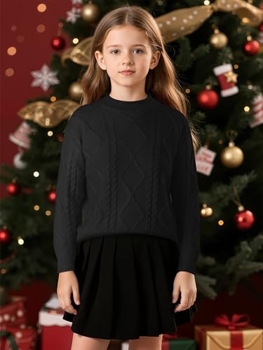 Girls' Cable Knit Pullover Sweaters Turtleneck Long Sleeve Warm Sweater for Teen Girls 5-14Y 6