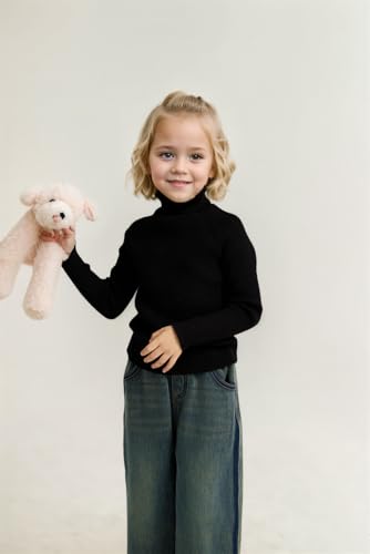 Girl's Turtleneck Sweaters Kids Long Sleeve Drop Shoulder Pullover Cable Knit Chunky Contrast Sweater Tops,Black 5