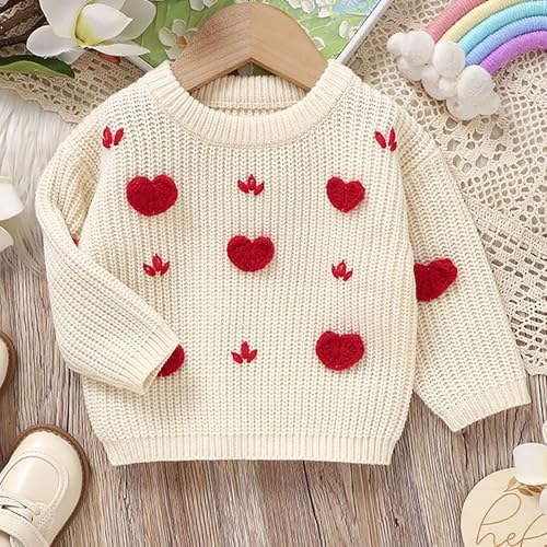 HOT ! Girl Hearts Embroidery Sweaters Cute Knit Print Crewneck Long Sleeve Pullover Ribbed Round Neck Fall Winter Tops