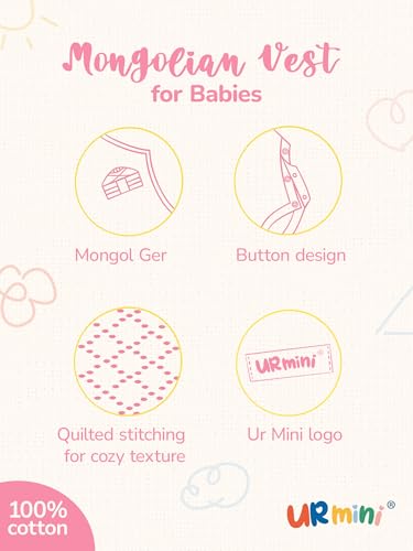 Girls' Mongolian Inspired Snap button Vest, Soft Pink, Embroidered Ger design 0-3 Months 7