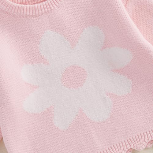 KMBANGI Kids Girls Sweater Sweet Long Sleeve Crew Neck Flower Knitwear Warm Winter Clothes 4