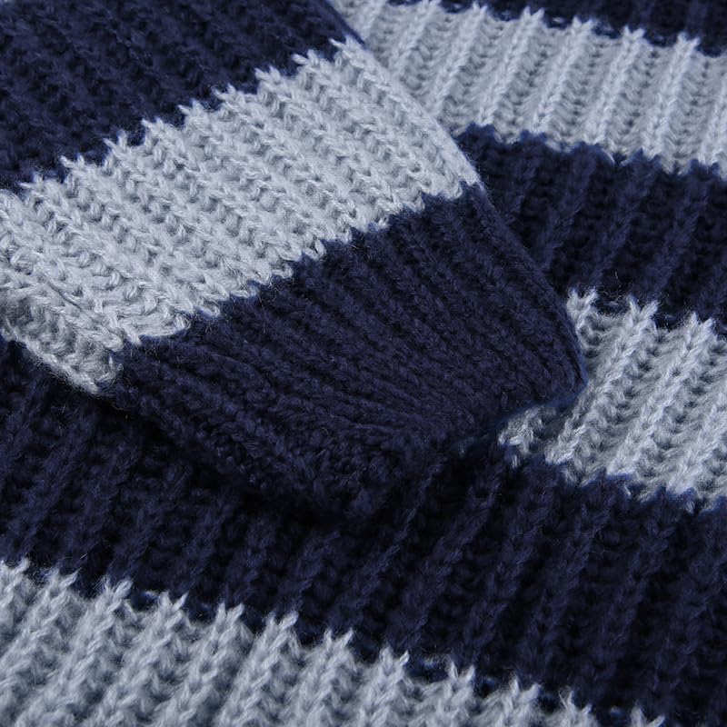 • The unique design of this sweater combines classic stripes with modern color blocking, adding a fashion-forward twist to your wardrobe.