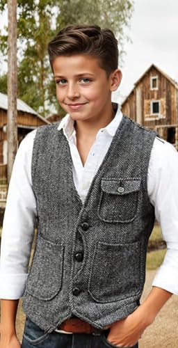 More information about Kids Boys Retro Vests Toddler Casual Herringbone Tweed V-Neck Suit Vest Youth Boy Wedding Slim Fit Formal Waistcoat