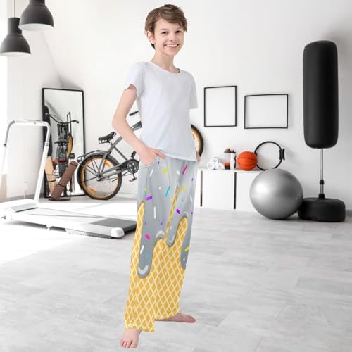 Boy's Pants Gray Ice Cream Jogger Pants Elastic Waist Long Bottoms Trousers with Pockets 6-14 Years 6