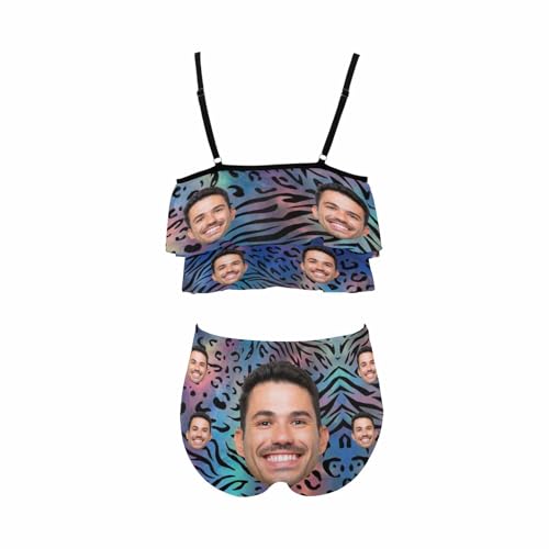 Custom Face Bikini Set for Women Personalized Tankini Swimsuits 2 Piece with Husband Face Funny Bathing Suit Swimwear 2