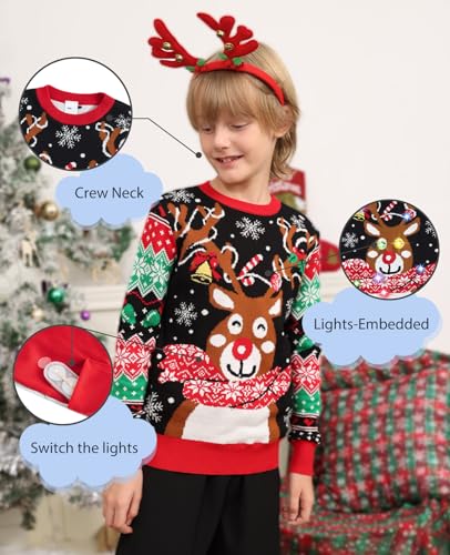 Cutemile Kids Boy Ugly Christmas Sweaters Size 5-14 Girls Light Up Xmas Sweaters for Party 6
