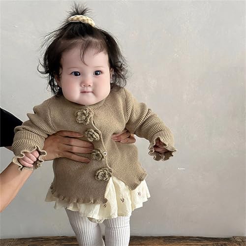 Baby Girls Knit Cardigan 3D Flower Button Sweater for Dress Long Sleeve Warm Cardigan Uniform Sweaters 3