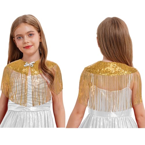 Girls Sparkly Sequins Fringe Tassel Cape Bolero for Dresses Wedding Party Shrug Cover Up 1
