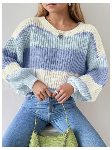 • Features: Long sleeve chunky sweater for girls, round neck, color block, drop shoulder, soft and cozy sweater for fall