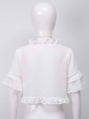 Kid Girls Casual Middle Sleeve Plain Mid-Sleeve Ruffle Shirt Chiffon Shawl Pearls Lace-up Straps Cardigan 6