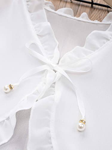 More information about Kid Girls Casual Middle Sleeve Plain Mid-Sleeve Ruffle Shirt Chiffon Shawl Pearls Lace-up Straps Cardigan