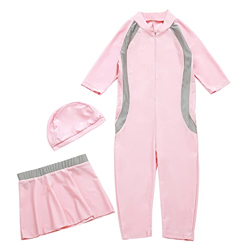 AFAVOM Muslim Swimsuits for Girls Kids Modest Islamic Swimwear Toddler Rash Guard Bathing Suit with Top Pants Swim Cap Hijab 3