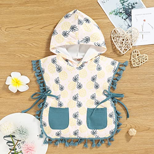 Qiylii Toddler Baby Girls Beach Cover-Up Hooded Bathrobe Strawberry/Pineapple Print Tassel Pocket Tie Up Swimwear Coverup 2