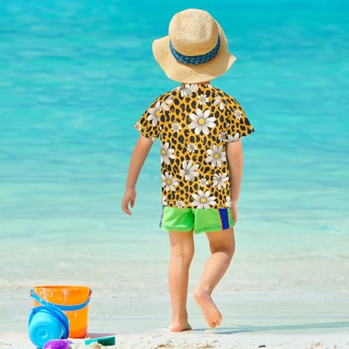 ALAZA Kids Rash Guard Girls Toddler Swim Shirts Short Sleeve Leopard Print Flower UPF 50+ 3T 5