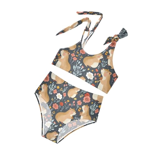 Wusikd Capybaras Flowers Girls Swimsuits Two Piece Cute Swimwear Bikini Set for for Girls Size 3T 5