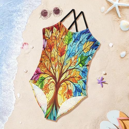 Glass Tree Colorful Bathing Suits for Girls Kids Swimsuits One Piece Swimsuits Summer Beach Swimwear 1