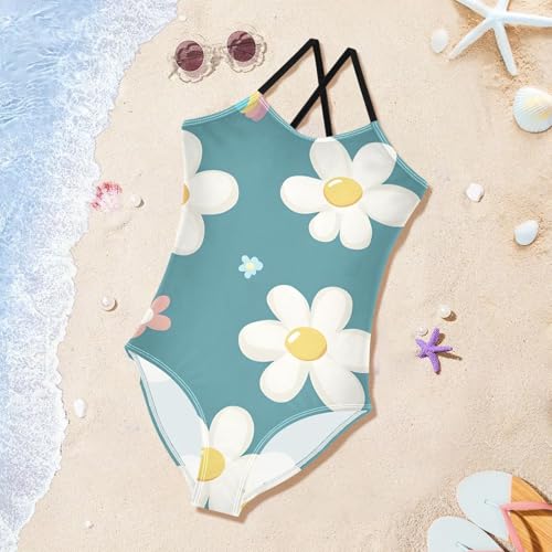 Bolaz Girls Swimsuits One-Piece Bathing Suits Multicolor Kids Sport Summer Beach Swimwear for 3-10 Years Old-Cartoon Flower Pattern 3