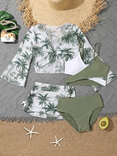 • Features: 4 piece swimsuits for girls, bikini set and coverup set, color block, coverup kimono and skirt, tree print