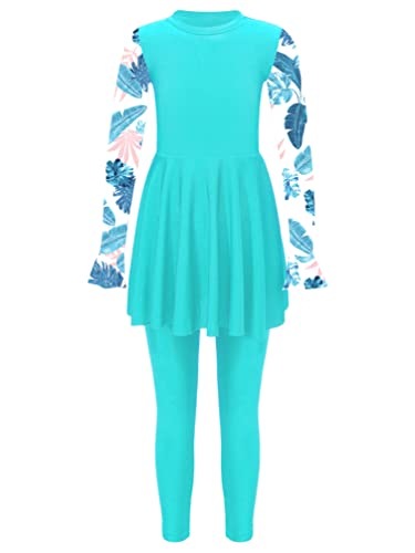Kids Girls Two Pieces Swimsuit Floral Printed Rash Guard Skirts with Legging for Seaside Holiday 6