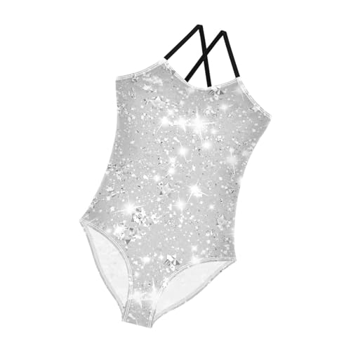 KLL Sliver Glitter Texture Silver Sparkle Girls' 1 Piece Swimsuits Beach Swimming Suits Adjustable Strap Quick-Dry 6