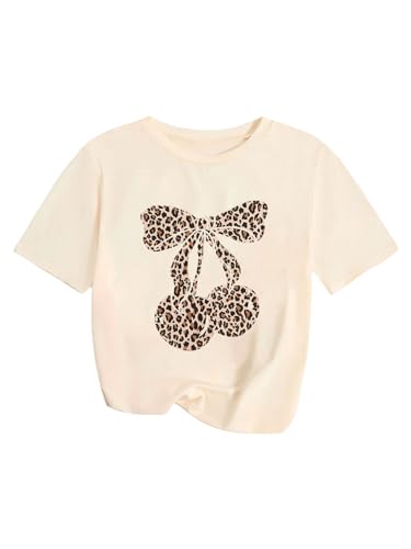 Floerns Girl's 3 Piece Cheetah Short Sleeve T Shirt Bowknot Print Tee Going Out Tops 7