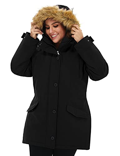 • DEFENDS AGAINST ROUGH WEATHER -- Teflon finished outer shell with thick film coating enhances the waterproof rate up to 5000mm. The women plus size parkas protect you against heavy rains, dry snows during chilly winter and keep you dry and comfortable all day.