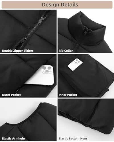 Fuinloth Women's Lightweight Puffer Vest, Water Repellent, 4 Pockets, Double Slider Zipper, Elastic Hem for Fall & Winter 5