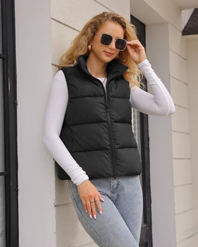 Fuinloth Women's Lightweight Puffer Vest, Water Repellent, 4 Pockets, Double Slider Zipper, Elastic Hem for Fall & Winter 2