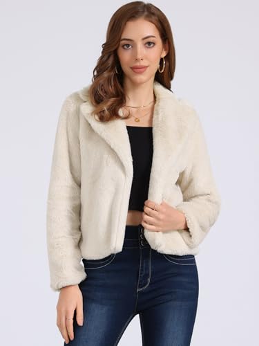 Seta T Women's Cropped Faux Fur Coat Fashion Winter Open Front Jacket Notch Lapel Long Sleeve Fluffy Coat 7