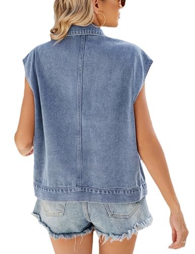 Women's Denim Jean Vest Casual Button Sleeveless Jean Jacket Vintage Denim Waistcoat with Pockets 5