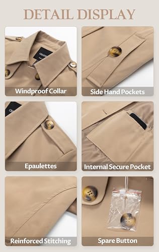 More information about CREATMO US Women's Cropped Trench Coat Classic Double Breasted Lapel Jacket Water Repellent Outerwear