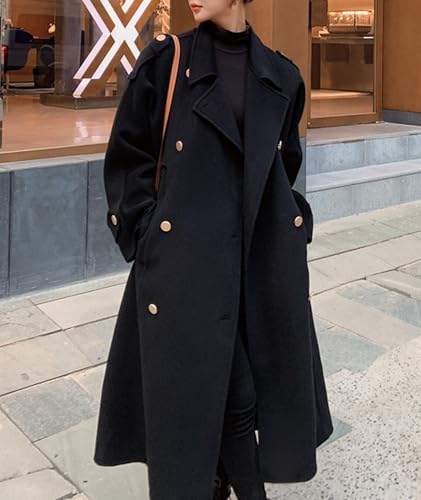More information about Sexyshine Women's Winter Double Breasted Long Pea Coat Notch Lapel Long Sleeve Wool Blend Trench Coat Overcoat