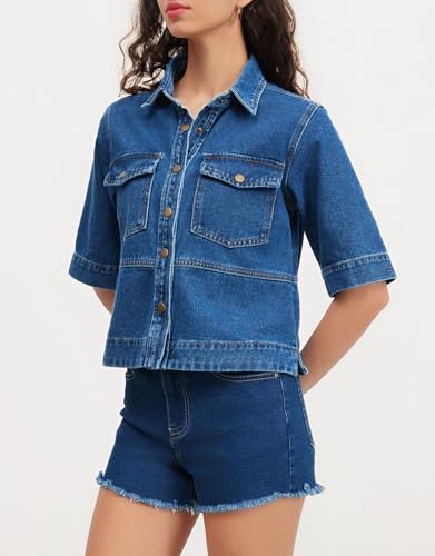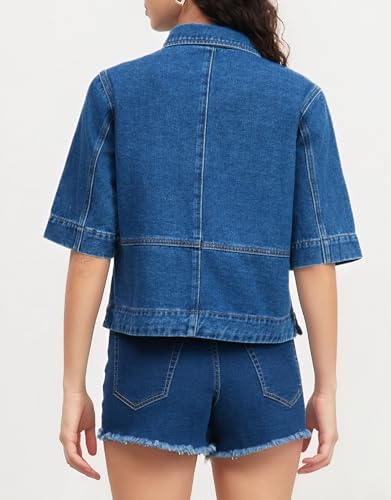 Ladyful Short Sleeve Denim Jacket for Women Lightweight Cropped Button Summer Down Jean Jacket Coat 1